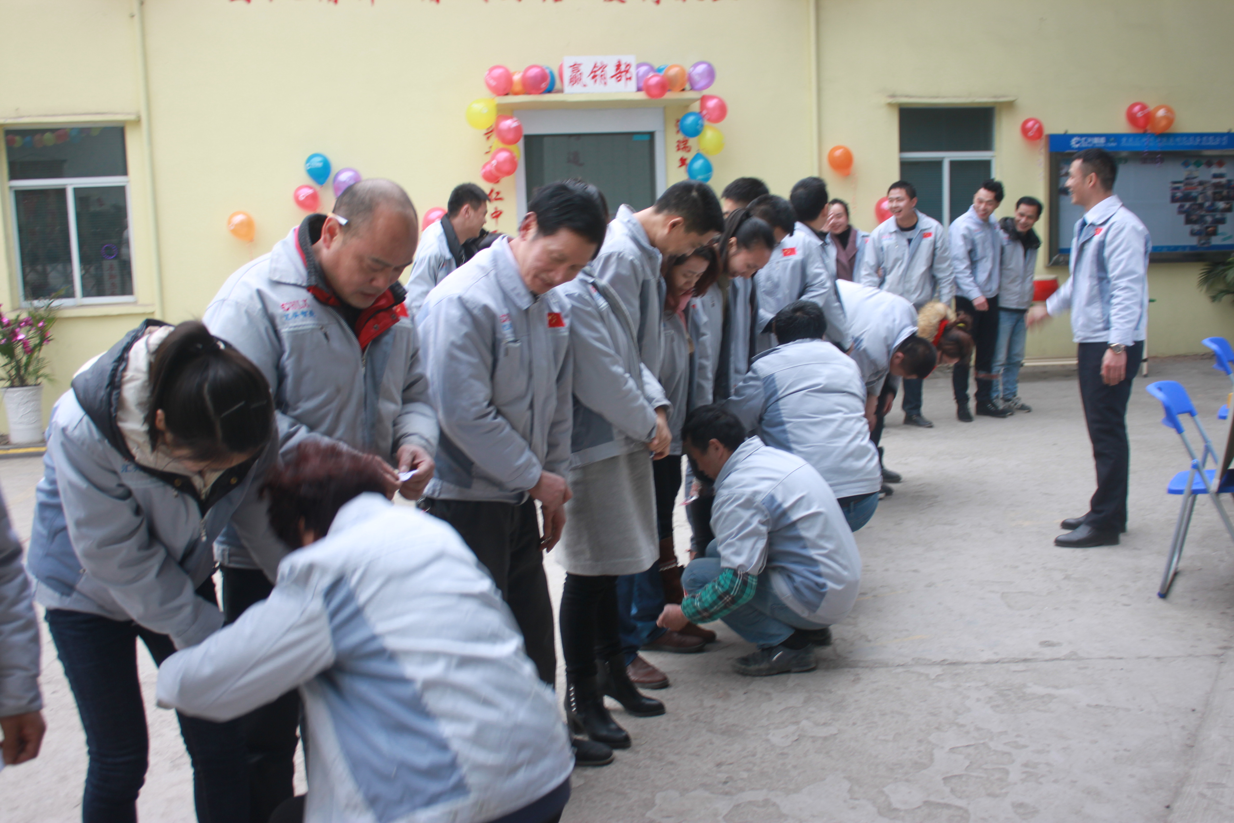2017年1月14日1時(shí)30分,重慶匯利興在匯興學(xué)校開展2016年度盛會。 會議主題:有智者事竟成,再啟航、夢飛揚(yáng)。 參會人員:重慶匯利興全體戰(zhàn)士 盛會以一場游戲?yàn)殚_場白,匯利興戰(zhàn)士一起肩并肩、手搭手進(jìn)行游戲的玩耍。然后依次抽獎進(jìn)入?yún)R興學(xué)校,正式開展年度盛會。