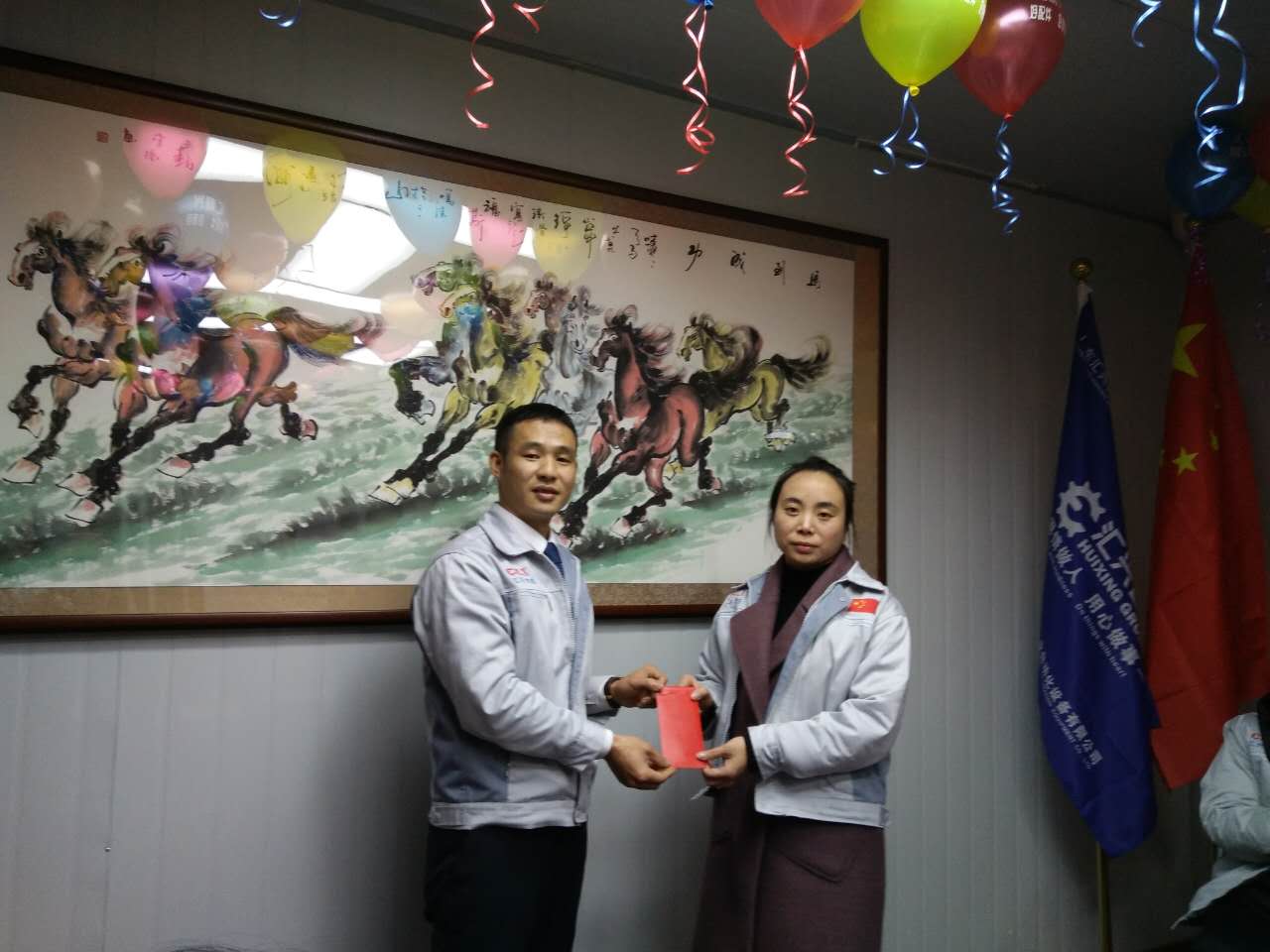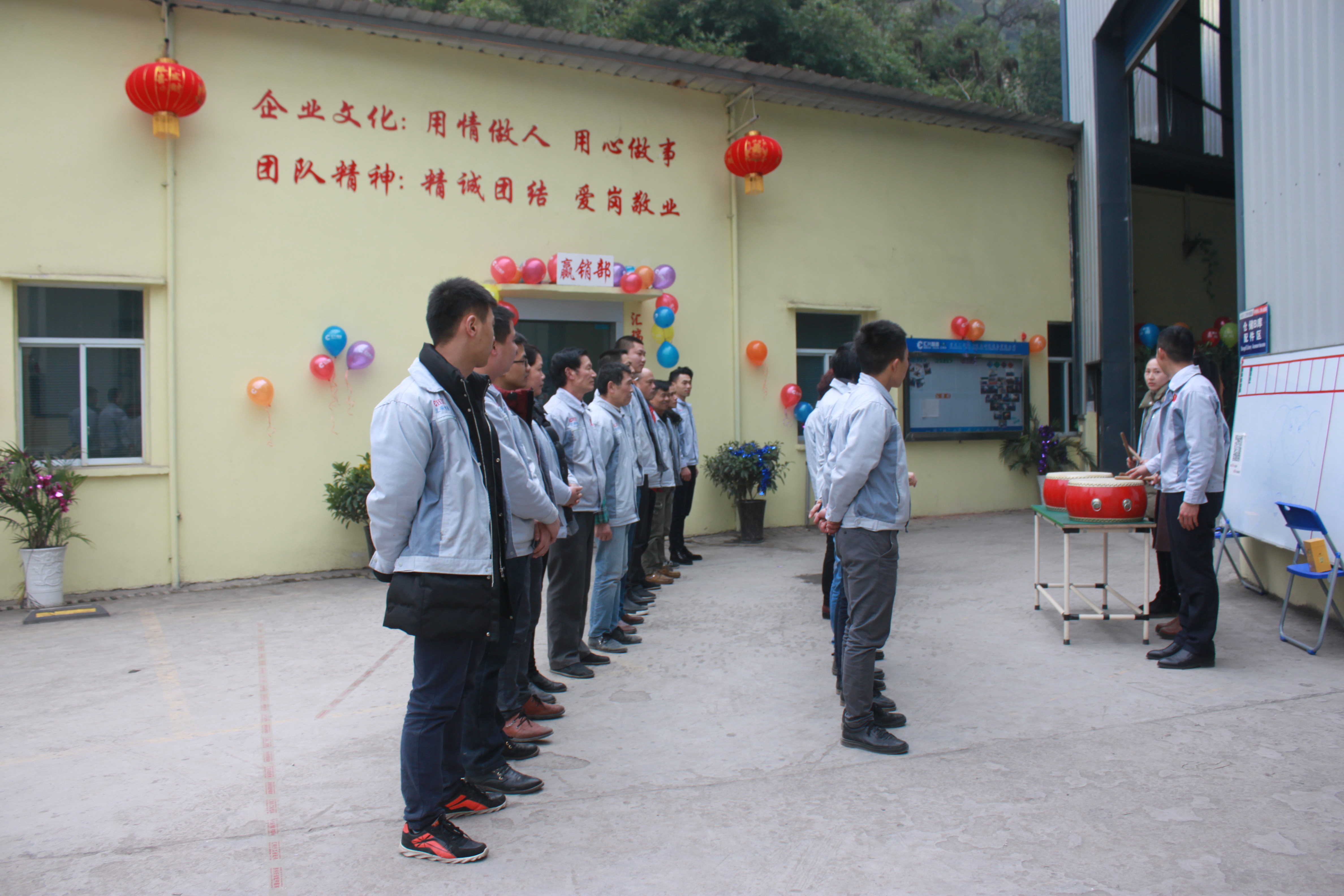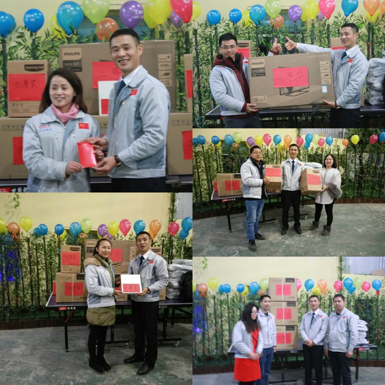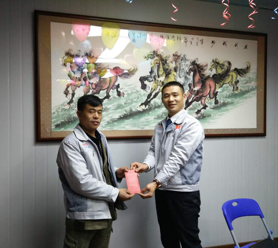 (眾人一條心)游戲準(zhǔn)備中,裁判們?yōu)檫x手們系上同心交織的紐帶 匯利興女戰(zhàn)士敲擊士鼓,士氣比武器更重要 會議召開前對企業(yè)三道(人道、孝道、商道)行三鞠躬 年度盛會由主持人劉園園上臺正式拉開序幕,會議前我們一起回眸2016年工作縮影,回眸了與匯利興大家庭的交集。 會議上,胡總經(jīng)理表示:2017年新起點(diǎn)的一系列規(guī)章制度、員工薪酬福利制度、員工職位考核制度,回首了2016年匯利興的成長與發(fā)展,3月14日公司搬址、傳祺戰(zhàn)車加入、倉儲及系統(tǒng)完善,2017年展望與目標(biāo)。同時(shí)表示感謝大家在2016年中的包容與支持同時(shí)也相信大家在2017年能一起攜手完成我們的目標(biāo)及挑戰(zhàn)。此后各部門代表發(fā)言總結(jié)2016年展望及2017年每月業(yè)績目標(biāo)。 匯利興全體戰(zhàn)士一起回眸2016年與匯利興大家庭的交集 隨著年會的氣氛越來越濃厚,接下來由胡總經(jīng)理一一頒發(fā)獎金及揭曉年會大獎獲者。獎金頒發(fā):最佳付出獎、最佳責(zé)任獎分別是劉元平與石樂歡戰(zhàn)士,在此感謝兩位家人的奉獻(xiàn)與付出。 在你們愛家的同時(shí)匯利興這個(gè)家會更加愛你們。 胡偉路總經(jīng)理與“最佳責(zé)任獎”榮獲者石樂歡同框合影 胡偉路總經(jīng)理與“最佳付出獎”榮獲者劉元平同框合影 年會大獎揭曉,胡總經(jīng)理一一揭曉大獎獲者,此次大獎由26個(gè)英文字母之一相繼而出,獲獎組圖以下: 胡偉路總經(jīng)理與年度盛會大獎獲得者合影圖(特等獎、一等獎、二等獎、三等獎、四等獎) 年度盛典活動逐漸接近尾聲,活動以“畫鼻子”游戲拉開帷幕。即使看不見光明,只要心中有信仰、信念那也將是一個(gè)通往前方的航燈。 匯利興大家庭年會團(tuán)圓飯圖貌 隨著年飯的結(jié)束,2016年盛會圓滿結(jié)束?;厥走^去,放眼未來,2016年已逝去的,我們不再留戀,2017年的到來我們?nèi)ビ?;因?yàn)樵谛碌囊荒暧形覀兊哪繕?biāo)及夢想我們要一同去創(chuàng)造去實(shí)現(xiàn)它,實(shí)現(xiàn)中國智能裝備全產(chǎn)業(yè)鏈集成智造標(biāo)桿,繼續(xù)引領(lǐng)行業(yè)的發(fā)展。同時(shí)在此感恩所有對匯利興關(guān)懷及支持過的您們,正是因?yàn)橛辛四鷤兊闹С植诺靡宰寘R利興茁壯成長,才能讓匯利興在行業(yè)道路上越走越穩(wěn)。感恩您們......