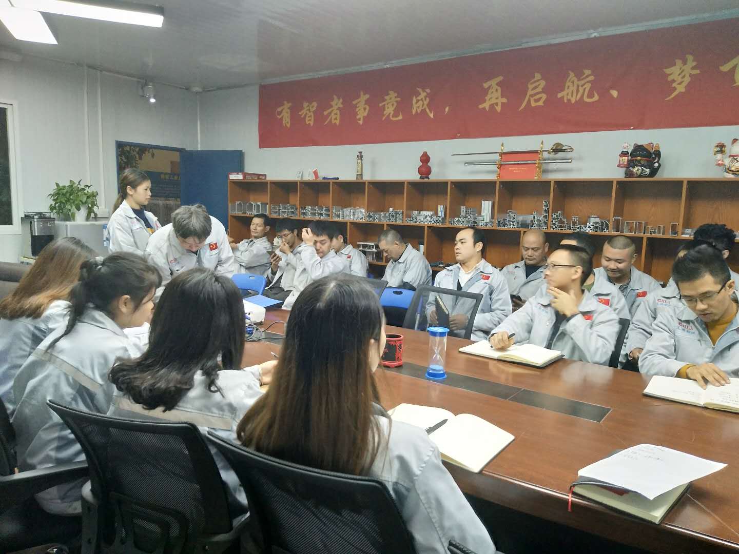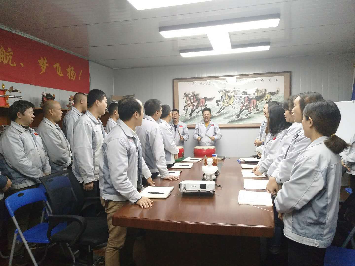 會(huì)議召開(kāi)前,大家依次對(duì)企業(yè)三道(人道、孝道、商道)行三鞠躬,并督促我們應(yīng)時(shí)刻感謝自己、感謝父母及我們的合作伙伴;同時(shí)進(jìn)一步也敲響了匯利興士氣鼓,士氣比武器更重要進(jìn)而不斷的鼓舞自己鞭策自己,隨后會(huì)議正式開(kāi)始。