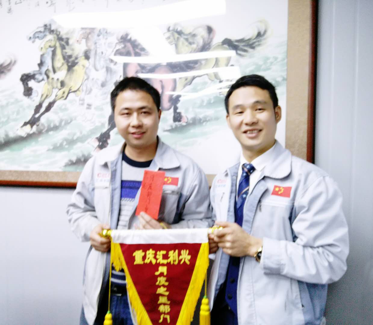 月度之星胡前敏、姜英(圖右)與胡總經(jīng)理(圖左)同框合影