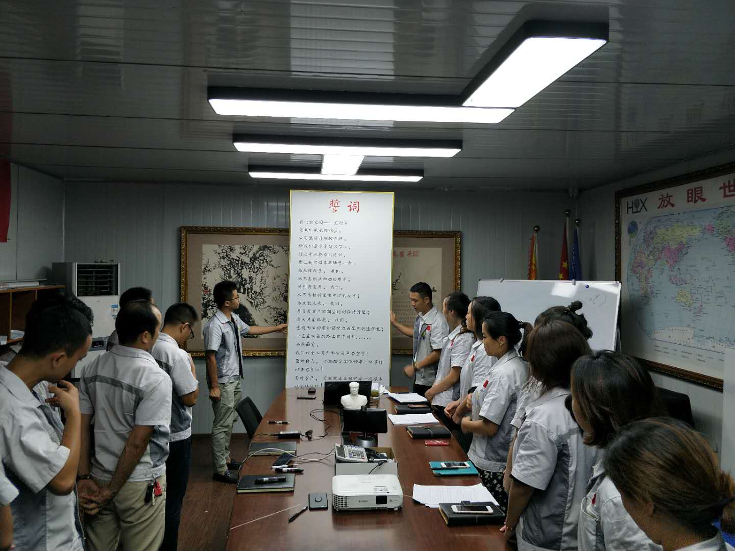 敢于做先行者,開天下萬物之先河。8月31日晚,我司精英們集體在匯利興學(xué)校開展隆重而莊嚴的宣誓會議,并在誓詞上簽署自己的名字,同匯利興一起共前行,正如誓詞所言“我們的家園-匯利興,是我們成長的搖籃......以個人的尊嚴和公司聲譽宣誓,面對自己,必踏踏實實做好每一件事情,以告慰良心;面對客戶,定兢兢業(yè)業(yè)做好每一次服務(wù),以詮釋誠信”。不忘初心,一路前行,匯利興始終秉承著“用情做人,用心做事”的企業(yè)理念,踏實而務(wù)實的做好每一件事,忠誠團結(jié)、勤奮進取。 昔日百戰(zhàn)多,勇破萬重關(guān)。匯利興無堅不摧的鋼鐵戰(zhàn)士,萬眾一心的精英團隊,個個都激情昂揚,鏗鏘有力的寫下自己的名字......寫下這份責(zé)任、這份擔(dān)當(dāng),因為心中有夢想、肩上有責(zé)任,成功的光芒也會不斷照亮著前方,指引道路;永不言敗是我們不變的信念,在奮斗的堅實腳步中,以超常的智慧,以不達目的誓不罷休的精神,全力以赴、勇往直前,相信我們的目標定會闊步前進!