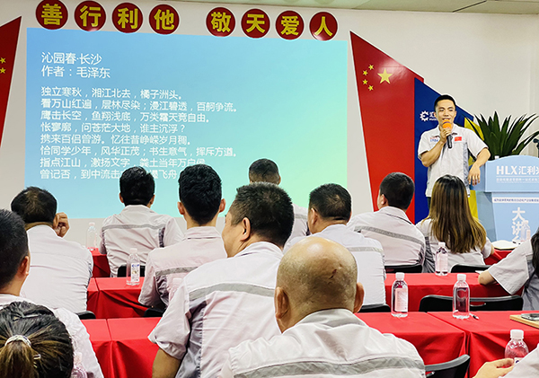 寶劍鋒從磨礪出 梅花香自苦寒來。為回顧總結(jié)上半年工作,進(jìn)一步明確下半年工作思路,確保全年目標(biāo)任務(wù)順利完成。2021年7月29日18點(diǎn)30分,匯利興西南工廠全體職員在匯利興學(xué)校召開2021年上半年工作總結(jié)會議。 會議伊始,兩位高管敲響士氣鼓,敲響我們下半年沖鋒的號角,現(xiàn)場士氣如虹。隨后宣讀企業(yè)文化。