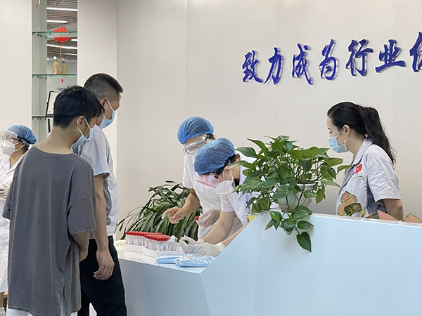 為加強(qiáng)新冠肺炎疫情防控工作 ,有效實施對新冠肺炎的預(yù)防、控制工作,保證員工健康安全。匯利興西南工廠積極響應(yīng)國家防疫號召,主動做好疫情防控工作,于2021年8月7日上午為全體員工開展核酸檢測,為全體員工的安全健康加上一層“防護(hù)盾”,確保全體員工都能以健康的身體、積極的心態(tài)投入工作中,進(jìn)一步為疫情防控企業(yè)做好疫情防控榜樣。 疫情防控,人人有責(zé)。為確保疫情防控和安全生產(chǎn)工作兩不誤原則,同時盡最大努力降低員工外出感染的風(fēng)險,行政部提前與醫(yī)院進(jìn)行溝通銜接,通過采取醫(yī)院派醫(yī)務(wù)人員到廠區(qū)內(nèi)進(jìn)行采樣的方式,為員工安全健康保駕護(hù)航。 檢測現(xiàn)場,醫(yī)務(wù)人員嚴(yán)格執(zhí)行檢測流程,對每一位參檢人員進(jìn)行實名登記驗證,填寫樣本采集申請單,發(fā)放檢測工具。為防止人員扎堆聚集,等候人員都需間隔1米以上,以部門分批次、分時段進(jìn)行檢測,并反復(fù)核對個人信息并記錄,確保信息準(zhǔn)確無誤。