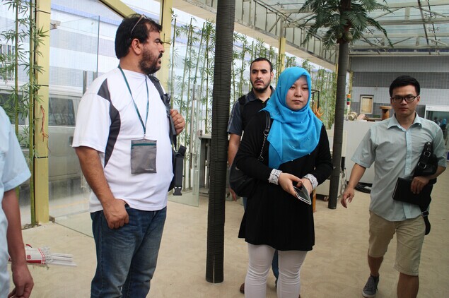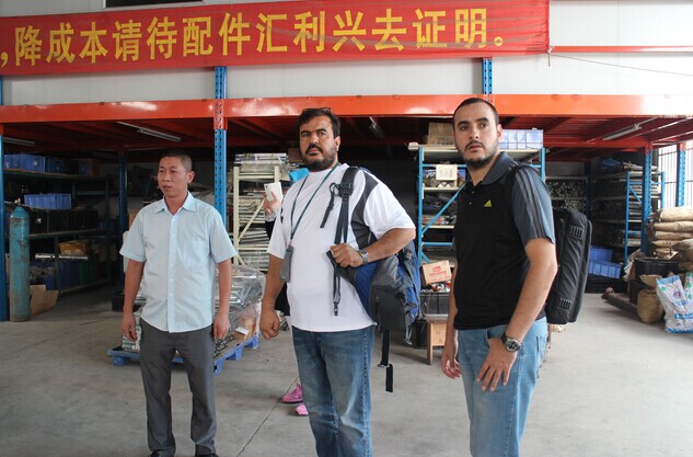 圖為李總親自陪同來(lái)自利比亞的MUSTAFA先生與其搭檔參觀生產(chǎn)車間