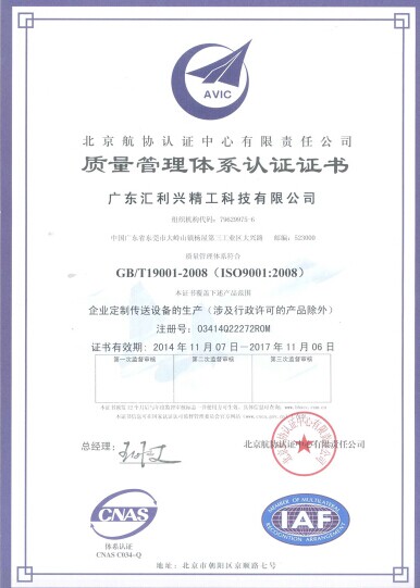 4、匯利興集團(tuán)公司于2014年11月通過ISO9001:2008質(zhì)量管理體系認(rèn)證;